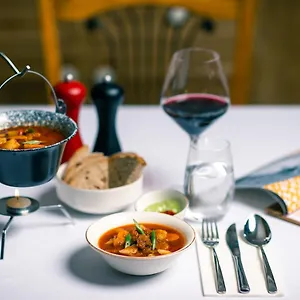 Gli ospiti sono invitati al ristorante Simaliba Belvarosi Csarda a godere del cibo squisito.